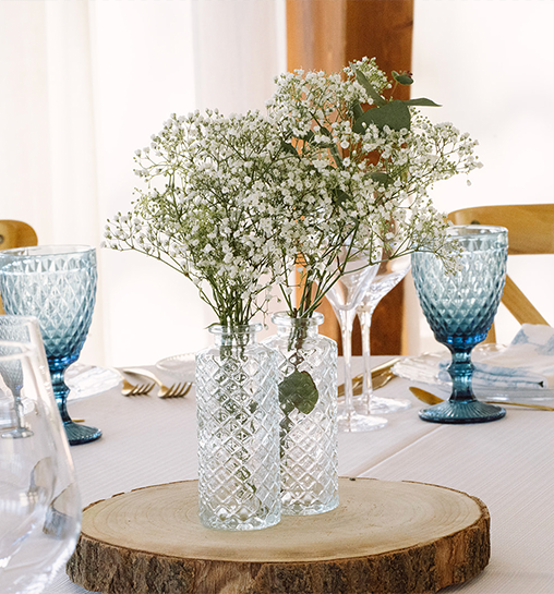 Arreglos florales, música, mobiliario, menaje, cristalería, iluminación, seating, montaje...